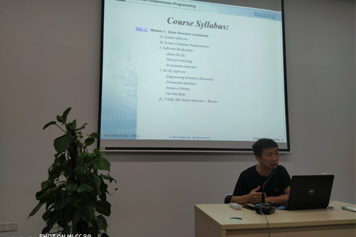 为了更好的服务已有客户,提高客户针对泰瑞达J750测试平台的深入应用水平,我公司特邀请了行业的应用专家,于2019年8月中旬在江苏某研究所举办泰瑞达J750HD集中培训现场二十多位工程师参加了此次培训。为保证良好的培训效果,在筹备此次培训班之前,我公司与相关单位的领导、专家做了全面沟通,充分调研及总结了各单位对目前正在使用的J750平台比较关心的应用问题,并就此次培训班的主要内容与客户进行了确认。专家就J750 VBT Code、Interpose 编程、MTO模块以及如何在程序中实现MTO测试、可测性设计(DFT)、如何正确测试单片机(one-chip)、J750硬件、晶圆测试硬件准备等主题进行了专业的讲解,同时在每个主题中加入了现场交流、讨论等环节,并针对大家实际应用中遇到的疑问进行了现场解答。